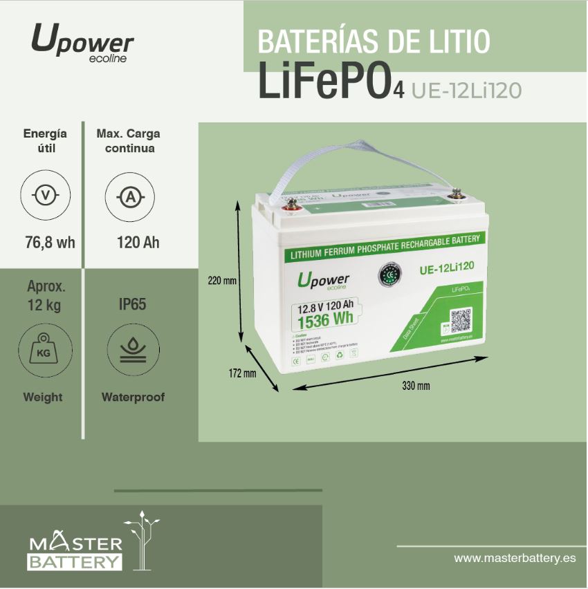 Batería de Litio monobloque de 12.8 V – 120 Ah – 4S4P – 330*172*220 mm de Masterbattery